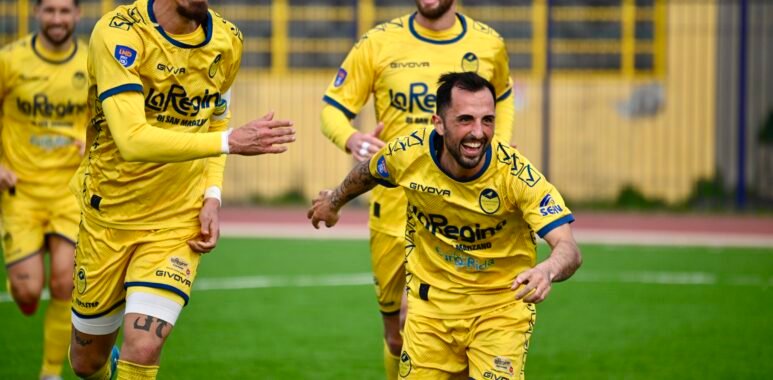 65’ Raddoppio della Scafatese: triangolazione perfetta tra Dambros e Maggio, il brasiliano si invola in area e insacca concludendo sul primo palo. 2-0